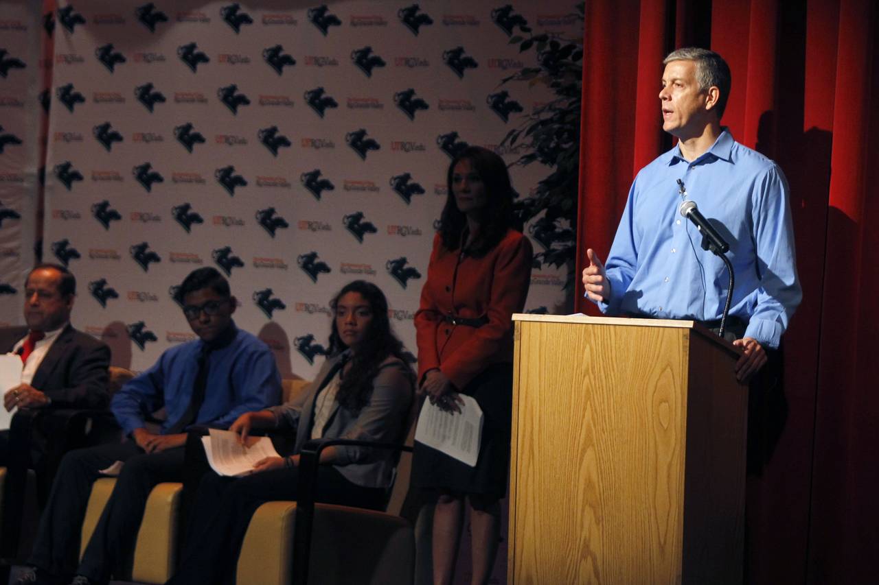Education secretary takes aim at low graduation rates while student debt is rising fast