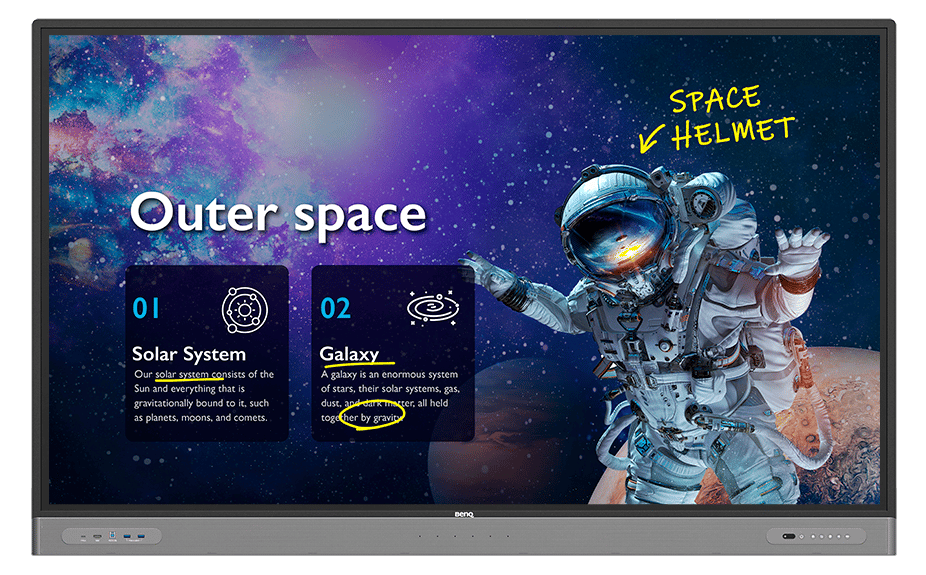 The BenQBoard RM03 Series helps to fight disease transmission in the classroom with germ-resistant screens and pens. For years BenQ has prioritized safe screen use. That’s why all BenQBoards have touchscreens as well as pens coated with a nano-ionic silver formula that kills 99.9% of common germs after contact. Also part of ClassroomCare technologies, they come with low blue light and flicker-free technology for reduced eye strain and a comfortable viewing experience. Anti-glare screens additionally ensure that display content is seen clearly, even on hybrid and remote calls.