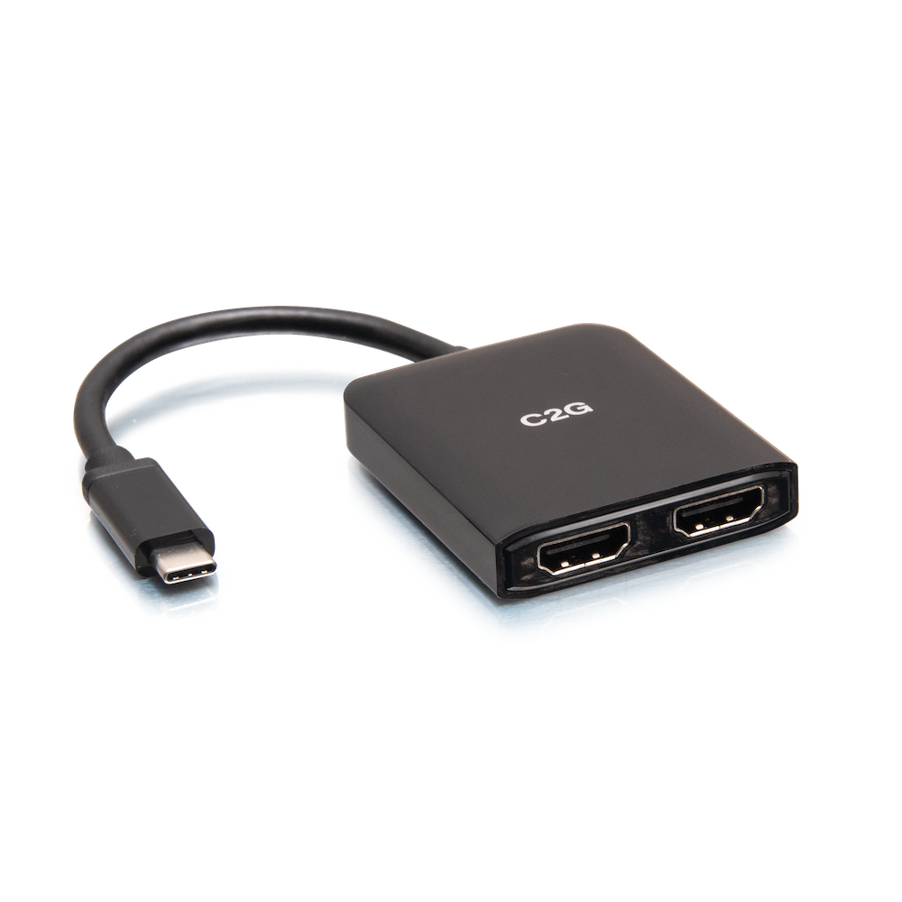 The C2G54540 USB-C to Dual HDMI MST Hub Supports Two HDMI-Enabled Displays for Video Mirroring, Video Extension, or Viewing a Single Video Image Across Two Displays