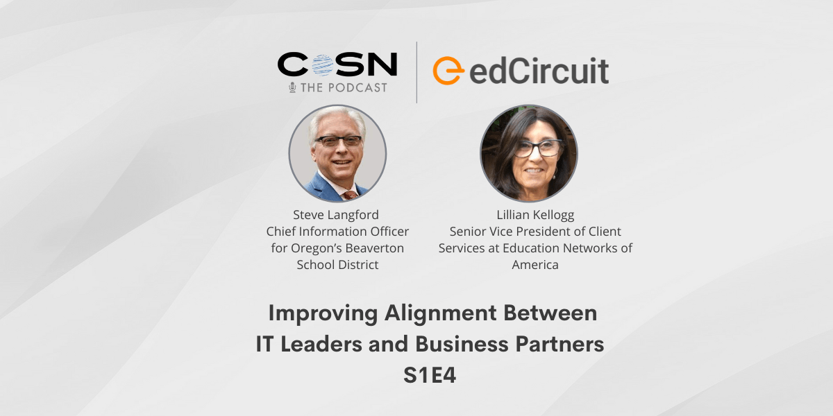In this episode of the CoSN podcast, we are joined by CoSN board member Steve Langford, the Chief Information Officer for Oregon’s Beaverton School District, and Lillian Kellogg, Senior Vice President of Client Services at Education Networks of America (ENA), and Affiliates discuss how IT leaders and business partners can better understand each other’s needs within the evolving vendor-purchaser environment.