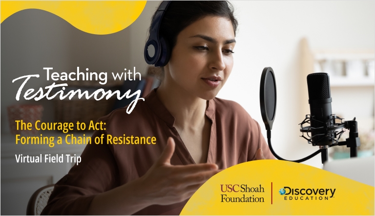 Charlotte, NC (Thursday, April 20, 2023) – Discovery Education and USC Shoah Foundation today announced a new virtual experience – The Courage to Act Virtual Field Trip – showing students in grades 6-12 the power of student voice and leadership to effect change. This virtual field trip is part of Teaching with Testimony, a program that connects students to the power of testimony from the survivors and witnesses of genocide, inspiring students to find their voices and act for a better future.
