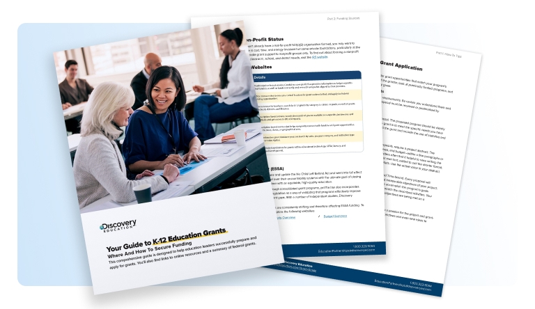 Charlotte, NC (Monday, September 16, 2024)—Edtech leader Discovery Education is offering teachers and administrators a free guide to applying for government and private grants. Entitled Your Guide to K-12 Education Grants, this resource illuminates the wide variety of K-12 grants available to educators and provides practical advice on how to prepare successful grant applications.
