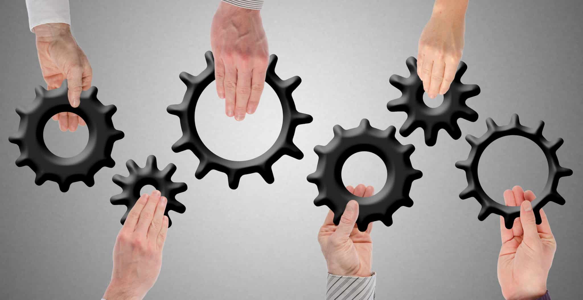 Hands holding gear wheels