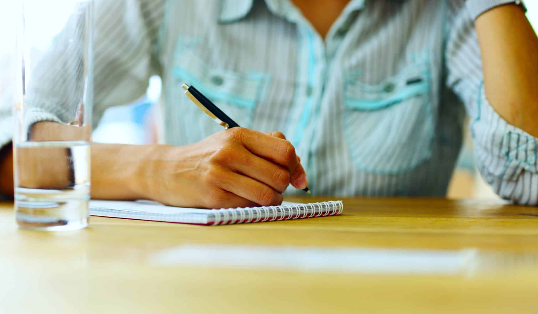 Closeup portrait of a female hand writing on a paper