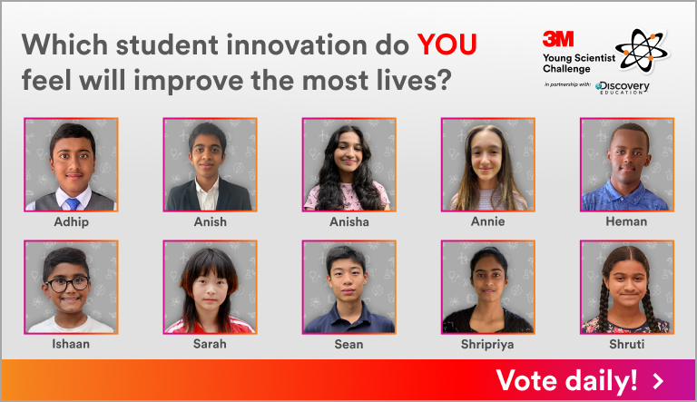 “The 3M Young Scientist Challenge showcases the remarkable potential of youth to positively change the world for the better,” said John Banovetz, 3M executive vice president, chief technology officer and environmental responsibility. “3M takes pride in contributing to their achievements and supporting their growth and development as scientists. We encourage everyone to cast their vote in support of those whom they believe will create the biggest impact.”
