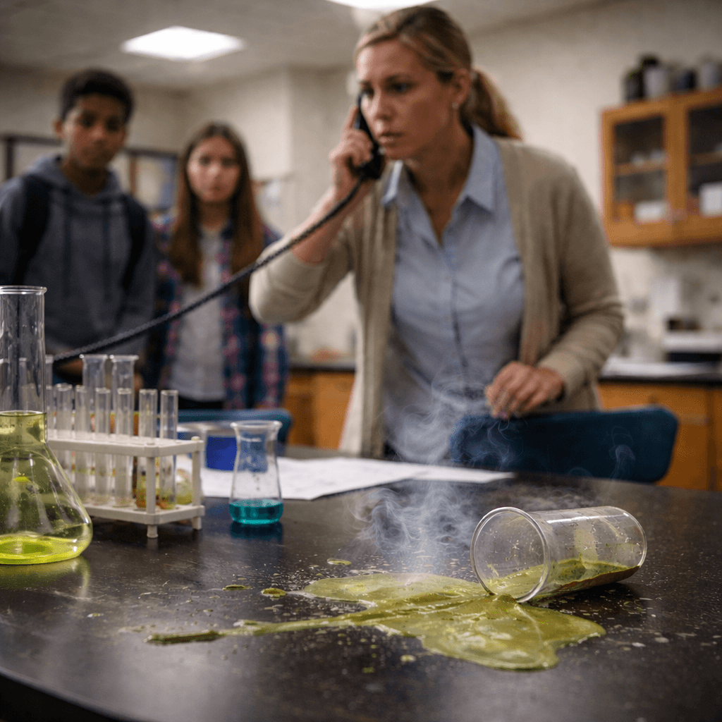 Consider a lab scenario. A minor chemical spill occurs. The teacher communicates the issue, but without clear urgency or detail. While waiting for support, the teacher holds position. Students remain nearby. The situation is contained—but not resolved.