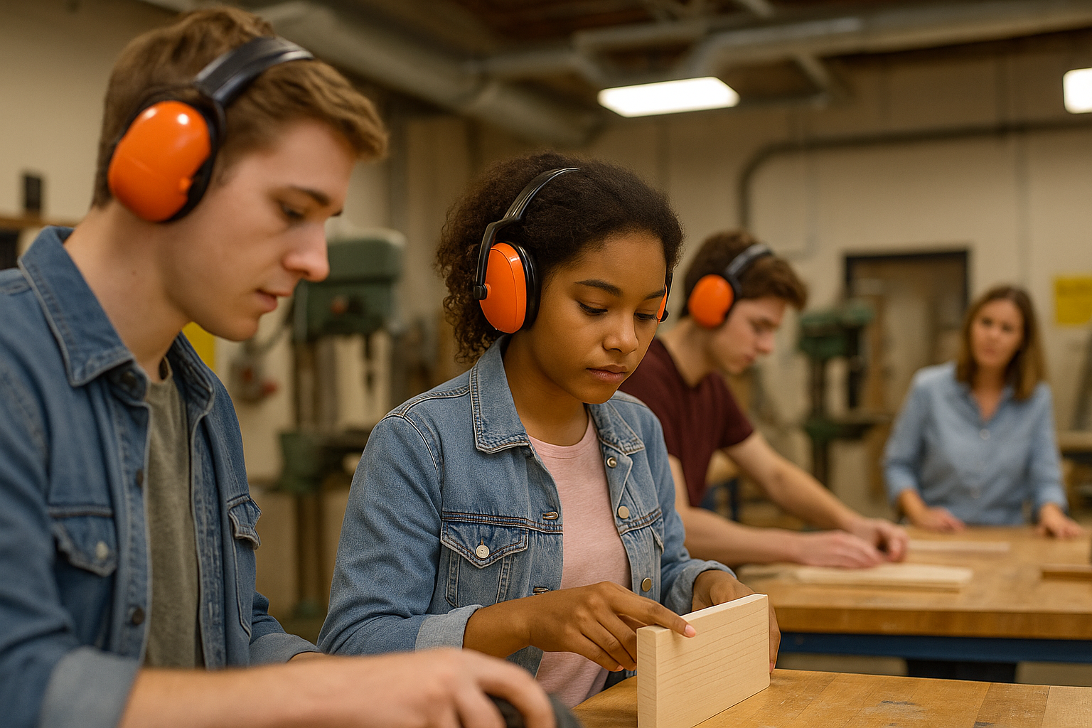 Woodshop saws, metal grinders, and construction tools routinely surpass safe sound levels. Unlike a one-off loud event, this daily repetition compounds the risk for students in Career and Technical Education programs.